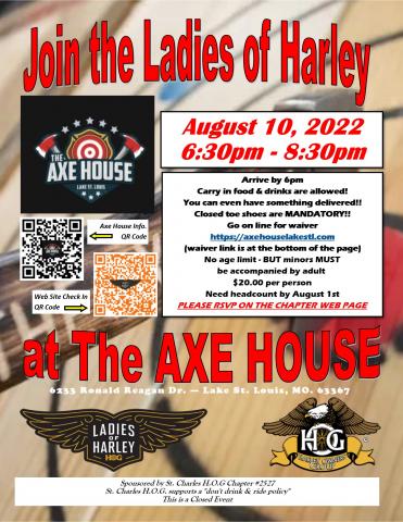 Open Event: This event is open to anyone interested in supporting Ladies of Harley. Chapter members, National H.O.G. members and other guests as desired.
